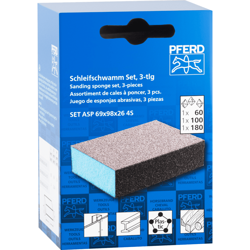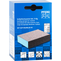 PFERD - Assortiment de cales à poncer résistantes à l’eau 69x98x26 mm A60, A100, A180 à quatre faces pour une utilisation universelle
