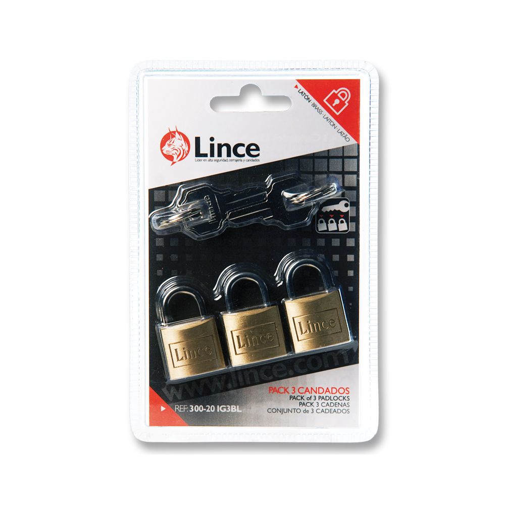 LINCE - Cadenas À Cylindre, Double Verrouillage - Laiton - 3 Pcs Avec 4 Cl