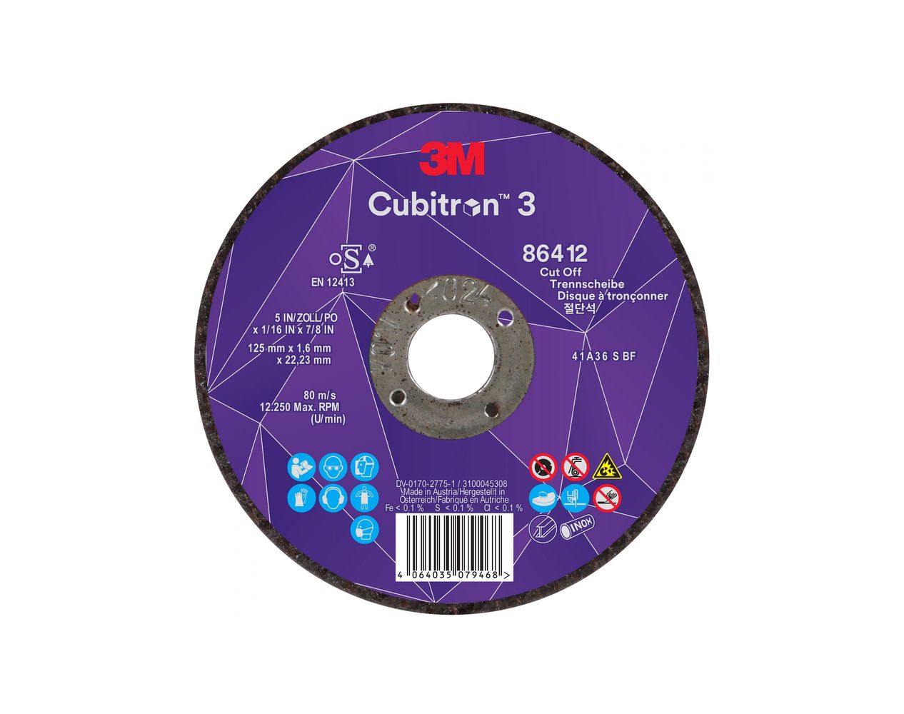 3M - Disque À Tronçonner 3m Cubitron 3 36+, T41, 125 Mm X 1.6 Mm X 22.23 Mm