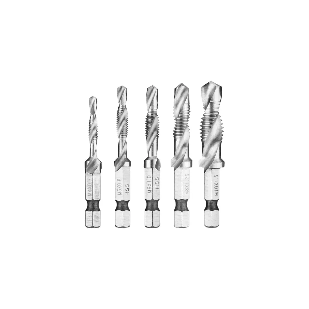 Impact Rated with Hex shank for both impact drivers and drills 1/4" (6.35mm) hex shank M4, M5, M6, M8, M10 3-in-1 design: Drill, Tap, Countersink Speed tip 5 pack