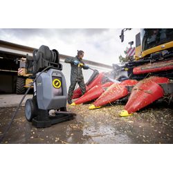 Le nettoyeur haute pression à eau froide HD 9/20-4 SXA Plus permet un travail ergonomique grâce au pistolet haute pression EASY!Force Advanced sans effort de maintien. La pression et la quantité d'eau peuvent être ajustées via le réglage Servo Control sur le pistolet/lance ; la lance en acier inoxydable (1050 mm) est rotative. La buse rotative Vibrasoft permet de réduire jusqu'à 30 % les vibrations et le bruit. Ce nettoyeur haute pression se démarque par sa qualité de finition et ses matériaux haut de gamme : le groupe moteur-pompe installé à la verticale (concept Upright) est composé d'une pompe à plateau oscillant à pistons en acier inoxydable et à culasse en laiton ainsi que d'un moteur à quatre pôles, à faible vitesse, refroidi à l'eau et à l'air. Le design compact ainsi obtenu assure un maximum de mobilité. Les montants en aluminium du châssis assurent sa légèreté et sa robustesse tout en permettant le chargement par grue. Le nettoyeur haute pression est fourni avec un flexible haute pression Ultra Guard à revêtement Teflon® résistant et un enrouleur de flexible automatique pour l'enroulement et le déroulement même sous pression et jusqu'à un angle de 45°, ce qui réduit de moitié les temps de préparation. Cet appareil de la gamme Super bénéficie également de nombreuses possibilités de rangement des accessoires avec le compartiment de rangement et les crochets réglables.