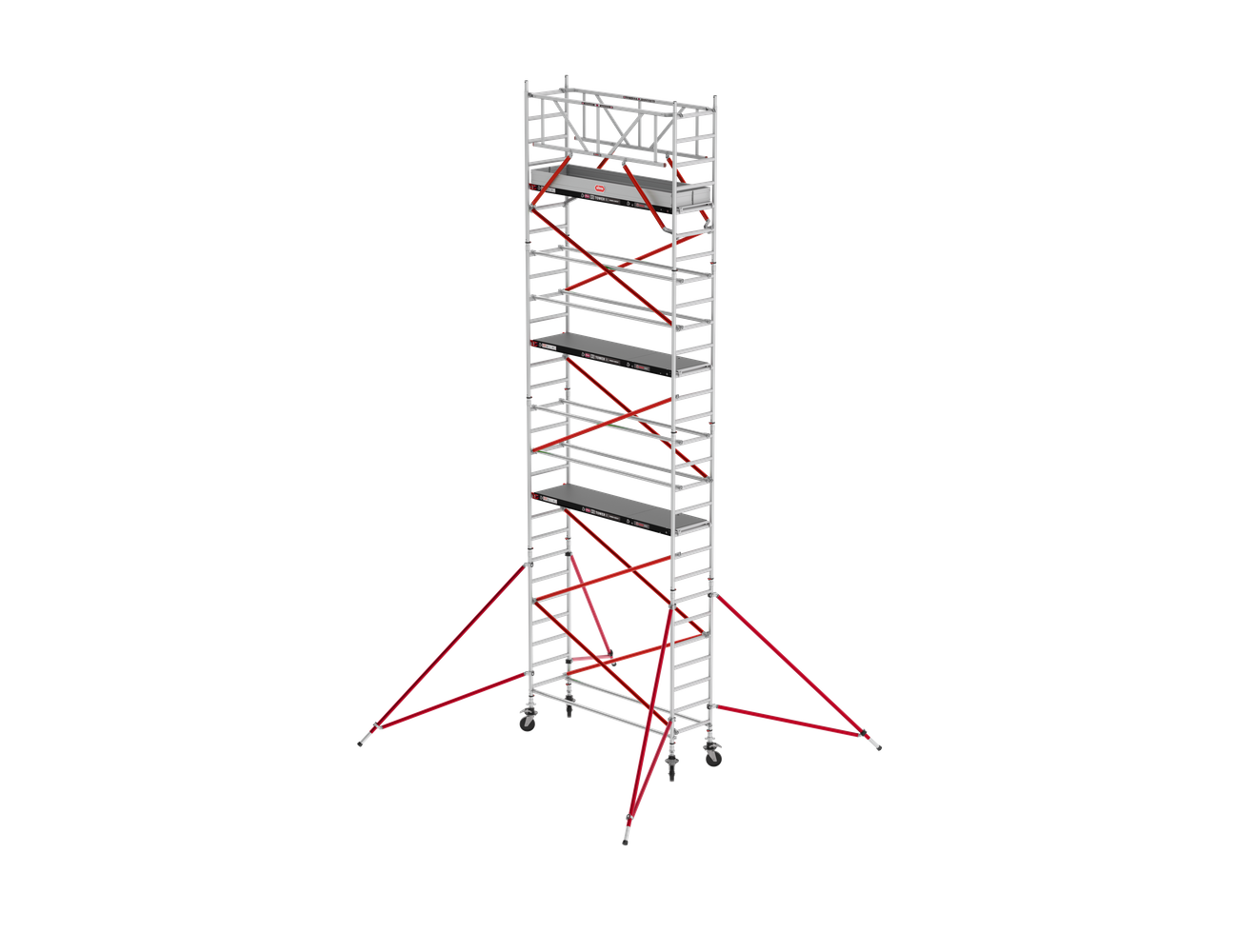 Le RS TOWER 51 vous permet de créer votre propre échafaudage sur mesure. Jusqu'à une hauteur de 10,2 mètres à l'intérieur et à l'extérieur. Avec des cadres étroits de 0,75 mètre et une charge maximale de 250 kg par plate-forme, cet échafaudage convient aux espaces réduits. La plate-forme est disponible en 1,85 m, 2,45 m ou 3.05 m de longueur. Les échelons antidérapants soudés sur la totalité de leur pourtour et les goupilles de sécurité fixes rendent la structure indestructible et fiable à 100 %. Avec le Safe-Quick® GuardRail en option, vous obtenez une protection optimale, et vous êtes toujours en sécurité.