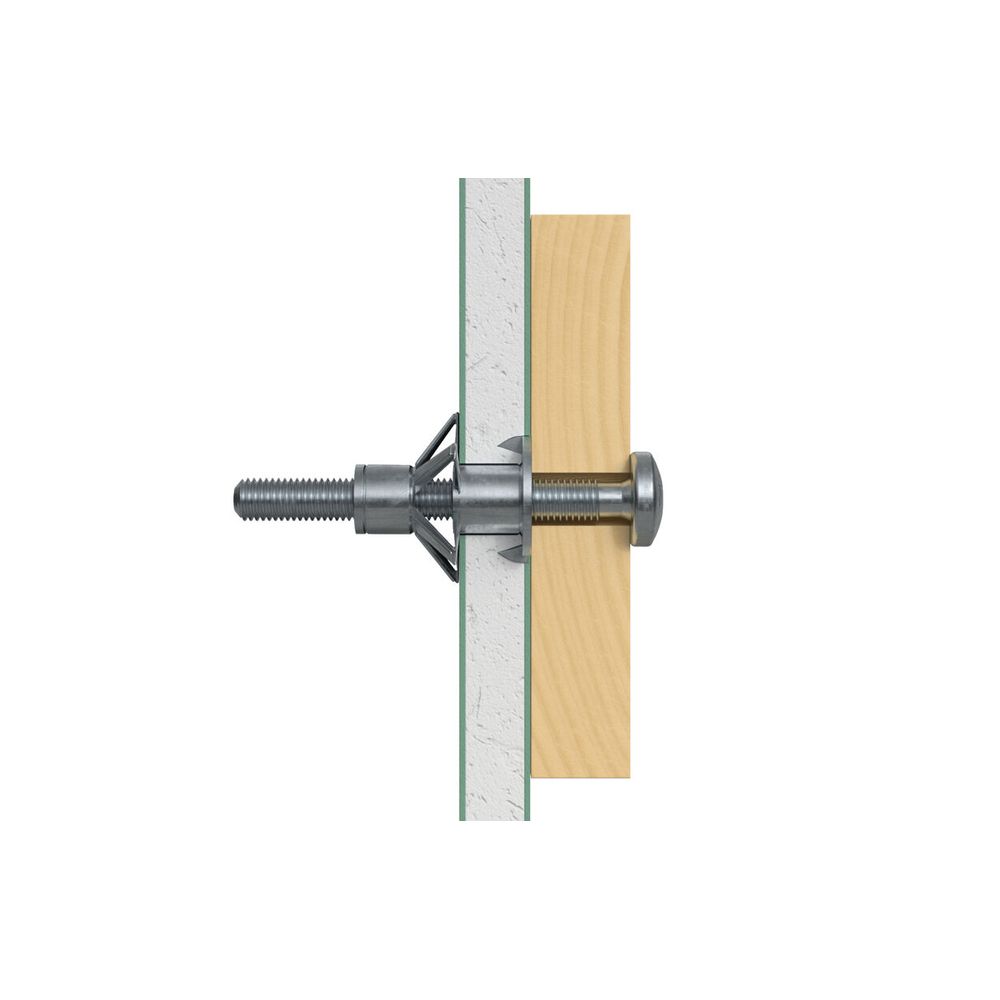 Meerdere keren losdraaien en bevestigen van het montagestuk zonder dat het draagvermogen wordt verminderd. Dit vergroot de flexibiliteit. Groot draagvermogen door het grote contactvlak van de spreidende armen. Meedraaibeveiliging voor een comfortabele montage: De vleugels (klauwtjes) aan de rand van de plug houden hem stevig in het plaatmateriaal. Geschikt voor de voorsteekmontage. Compleet met metrische schroef. |