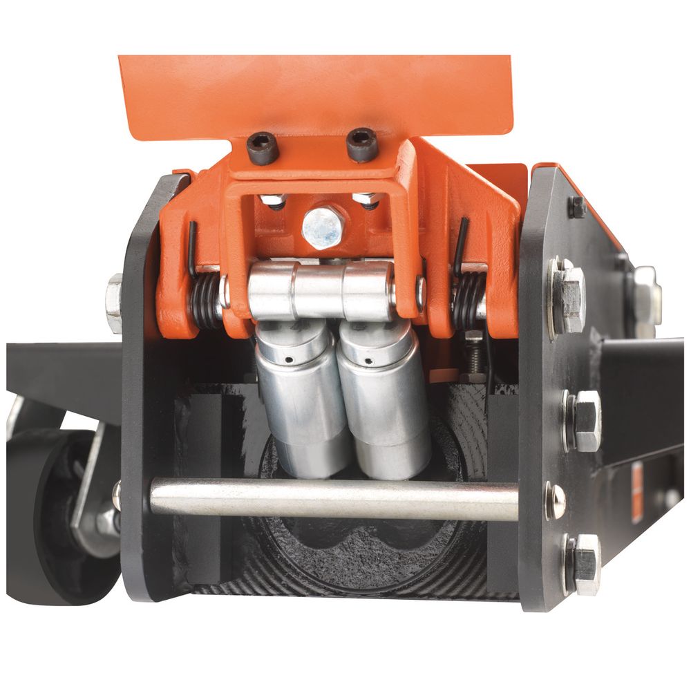 Rolkrik, 3 t, ontworpen voor het opkrikken van uiteenlopende voertuigen Minimale hoogte 90 mm en maximale hoogte 552 mm Dubbele zuigers waardoor 50% minder gepompt hoeft te worden Extra groot voetpedaal en samengestelde gebogen hendel voor snel, veilig en comfortabel gebruik Stalen en met PU (polyurethaan) bedekte wielen zorgen voor stabiliteit en geruisloos werken Stofkap beschermt de zuigers en de veer tegen beschadiging Met rubber bekleed zadel voorkomt beschadiging van het voertuig en wegglijden Foam op de hendel voorkomt schade aan de carrosserie van het voertuig Uitgerust met veiligheidsdrukklep en systeem voor regeling van de daalsnelheid CE-gecertificeerd volgens 2006/42/EG, BS EN1494